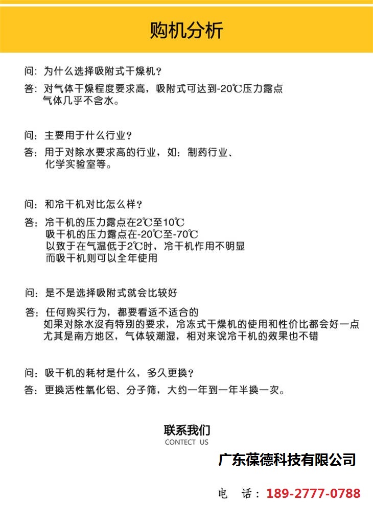 塔床阻力小,減少再生氣體損耗 冷鍍鋅防銹,內壁防銹處理,減慢銹蝕速度 30%干燥劑余量,補償干燥劑的自然老化 全電子編程控制器,人機界面友好、操作簡單 耐高壓吸附桶,穩定耐用